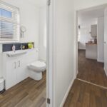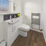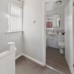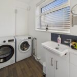 UTILITY/CLOAKROOM 9' 2" x 4' 7" (2.84m x 1.32m) This versatile room is designed for functionality and style, featuring a modern wash hand basin with under-storage, a low-level W.C, and a heated towel rail, complemented by recessed downlights for a bright, contemporary feel. A double-glazed window to the rear elevation complete with a fitted blind, ensures privacy while allowing natural light to fill the space. The room is plumbed for a washing machine and provides space for a tumble dryer, making it practical for everyday living. With potential to be converted into a shower room or second bathroom, it offers flexible accommodation to suit modern family needs.