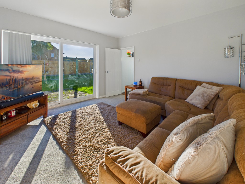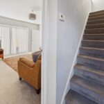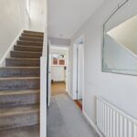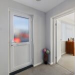 ENTRANCE HALL 12' 2" x 5' 9" (3.71m x 1.75m) Welcoming entrance hall bathed in natural light, featuring neutral tones and a modern grey carpet. The smooth ceiling adds a clean, contemporary feel, while the hall provides access to both reception rooms and the kitchen, with stairs leading up to the first floor
