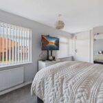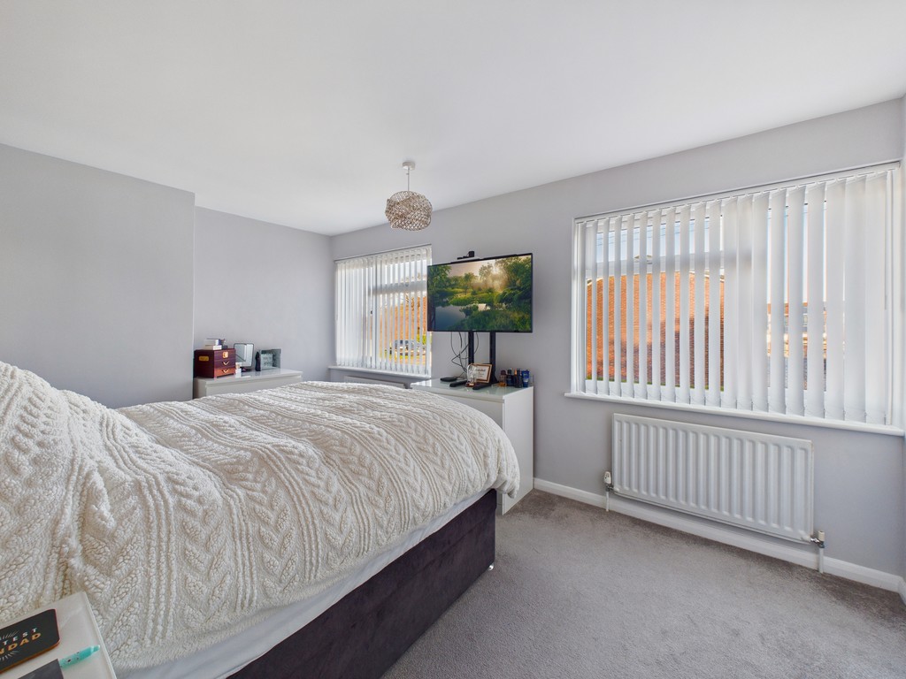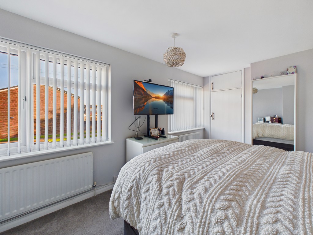 BEDROOM ONE 14' 5" x 10' 6" (4.11m x 3.12m) This bright and airy room features two double-glazed windows to the front elevation, complete with fitted blinds for privacy and light control. It also includes a built-in single wardrobe, providing convenient storage and is served by two radiators