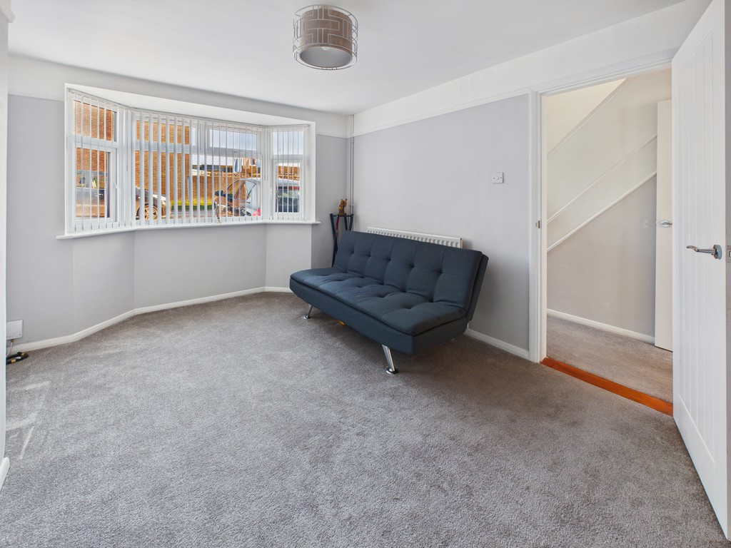 RECEPTION TWO/BEDROOM THREE 13' 9" x 10' 6" (4.57m x 3.15m) A spacious room to the front elevation, featuring a large double-glazed bay window with vertical blinds that flood the space with natural light. The room boasts modern décor, a sleek radiator, and a smooth ceiling. Flexible in its use, it could serve as a second reception room or be easily converted into a third bedroom.