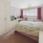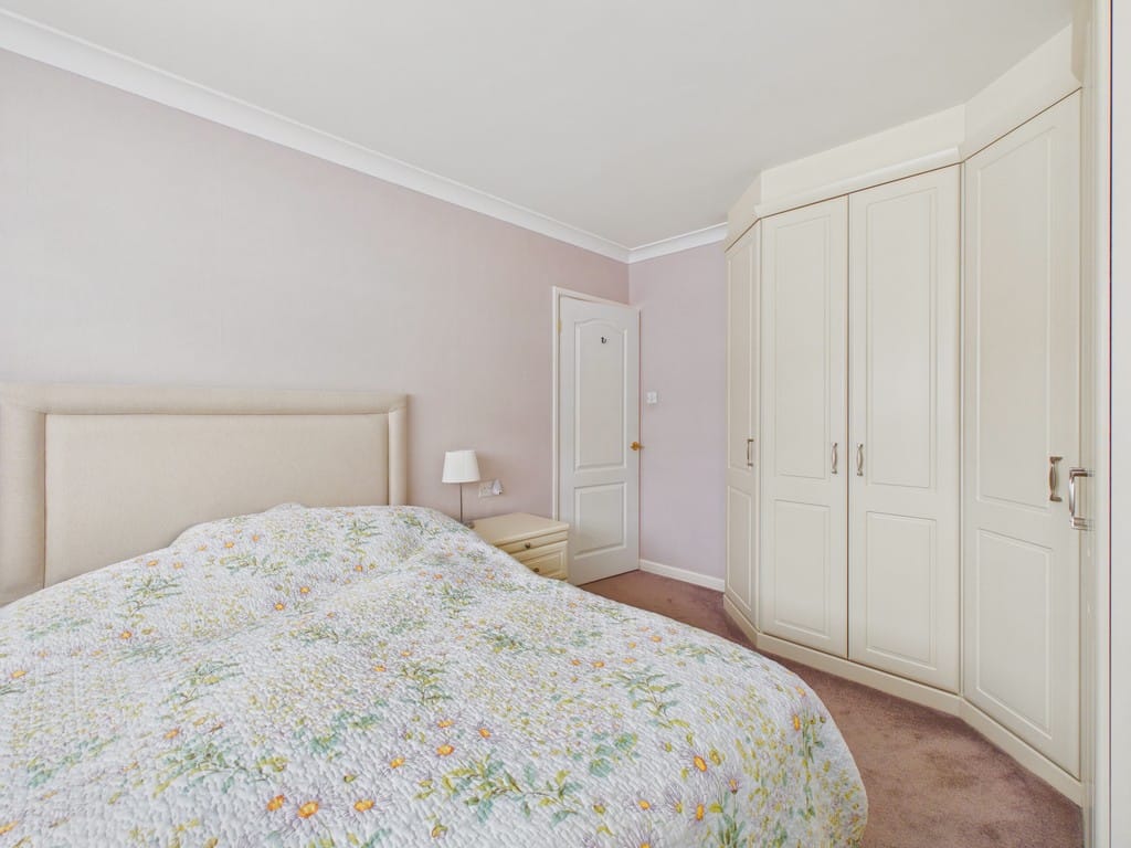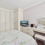 BEDROOM TWO 13' 11" x 9' 11" (4.24m x 3.02m) A beautifully presented bedroom finished in soft, calming tones, creating a light and relaxing atmosphere. The room benefits from a large array of built-in wardrobes, providing excellent storage, along with a matching dressing table and drawer units, offering both practicality and a cohesive, elegant design.