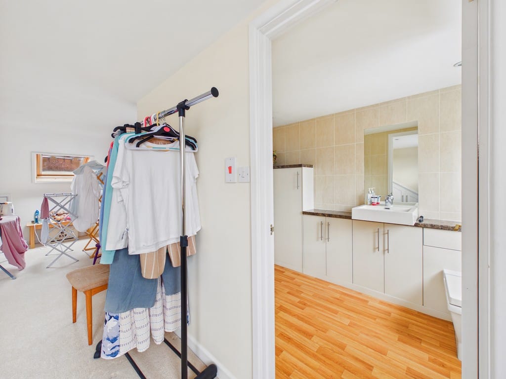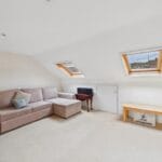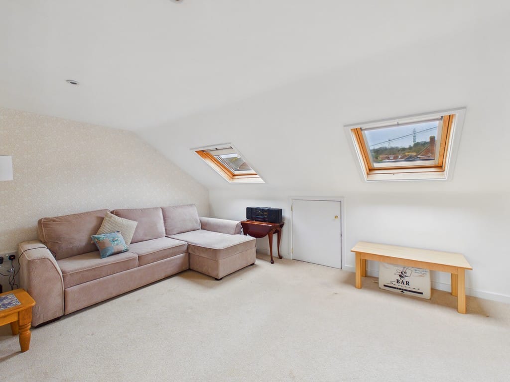 MASTER BEDROOM 22' 3" x 15' 5" (6.78m x 4.7m) A very spacious room with stunning views over the Solent, featuring built-in wardrobes and excellent natural light. There are two Velux windows with blinds to the front elevation, along with a double-glazed window to the rear. The room is finished in neutral tones throughout and benefits from access to the eaves space, providing valuable additional storage. A door leads to: