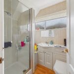 SHOWER ROOM 6' 3" x 5' 7" (1.91m x 1.7m) Tiled walls with laminate flooring. Double-glazed window to the side elevation providing natural light. Walk-in shower with glass screen, low-level WC, and hand basin with useful under-storage. Heated towel rail.