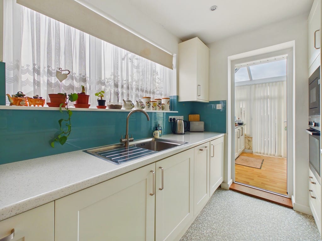 A double-glazed window to the side elevation allows for natural light, and a door provides direct access to the conservatory, creating a practical and well-connected layout.
