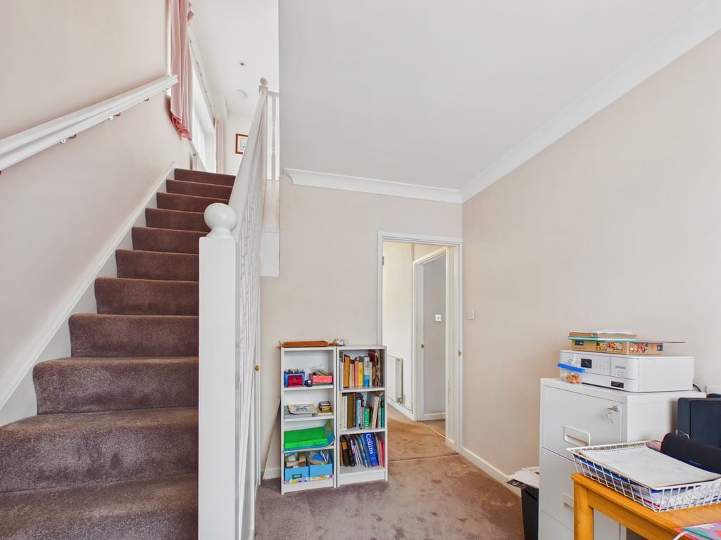 STUDY 10' 4" x 8' 8" (3.15m x 2.64m) A versatile space suitable for use as a study or playroom, featuring a double-glazed window to the rear elevation, radiator, and stairs with under-stair storage leading to the master suite