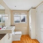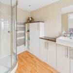 MASTER SUITE 22' 3" x 15' 5" (6.78m x 4.7m) This large and luxurious suite offers an extensive selection of built-in storage and a stylish finish throughout. Features include a corner shower with glass screen, rectangular hand basin with feature mirror above, and a low-level W.C. Additional benefits include a heated towel rail, tiled walls, laminate flooring, smooth ceiling with recessed downlights, and a double-glazed window to the rear elevation, providing natural light and ventilation.