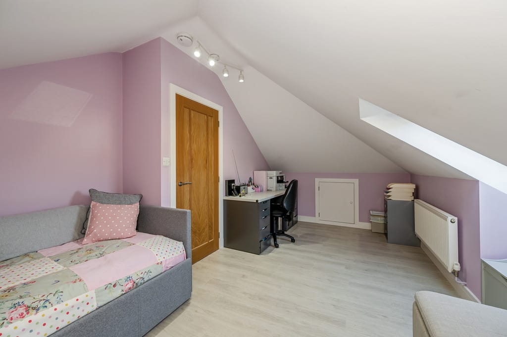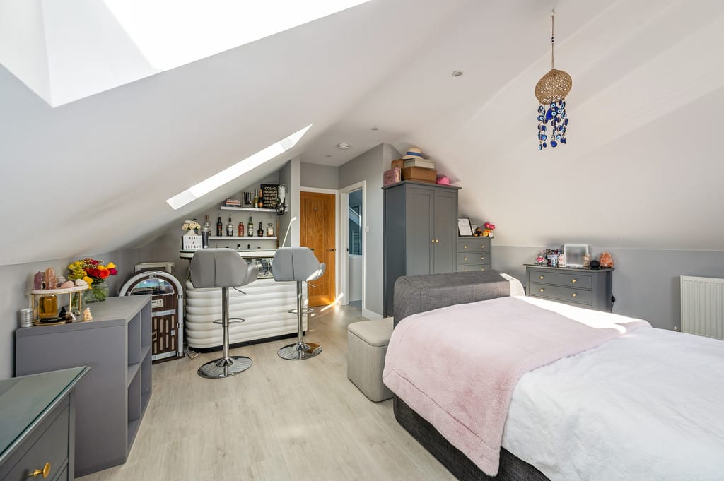 BEDROOM FOUR 16' 8" x 10' 7" (5.08m x 3.23m) Featuring extensive eaves storage, a Velux window, and laminate flooring, this versatile room could easily serve as a lounge or a dressing room for the master suite.