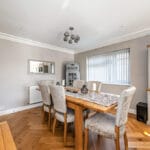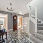 ENTRANCE HALL This stunning, large entrance hall sets the tone for the entire property. It is light and airy, featuring a beautiful tiled floor, smooth ceiling with feature pendant lighting, and a soft grey colour palette. The staircase to the first floor includes convenient under-stair storage which also houses the water softener, and there's a radiator for added comfort. Elegant oak doors lead to the main reception areas, with an additional door providing access to the garage, which-like neighbouring properties-could be converted into further living space such as a study or snug, subject to permitted planning.