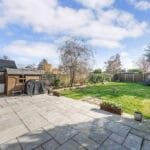 REAR GARDEN Good-sized private garden mainly laid to lawn, featuring a selection of mature planted borders and a terrace. The garden offers double side access to the front of the property and comes with planning permission to build a cabin-perfect for a home office, games room, or garden entertainment space.
