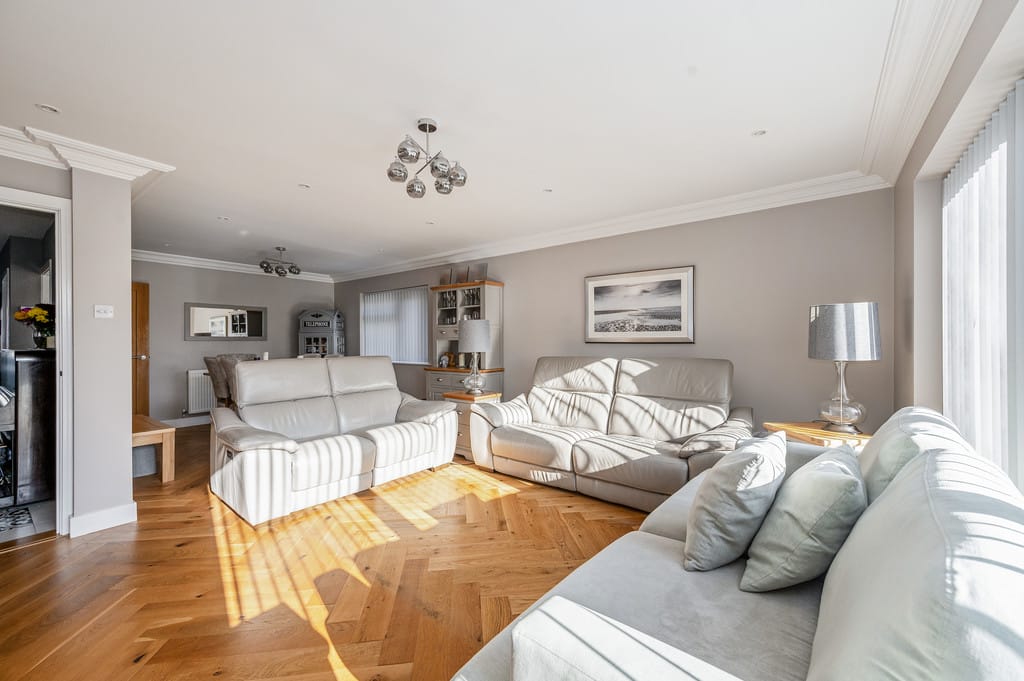 PROPERTY OVERVIEW Immaculate throughout, this extended detached bungalow now spanning over 2,439 sq ft is ready to move straight into. Offering flexible living accommodation, the ground floor is currently arranged with a large reception/dining room featuring bi-fold doors overlooking the generous rear garden, a stunning kitchen, two bedrooms, and a luxury bathroom complete with a TV.