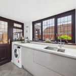 A charming reception room with a feature fireplace provides a cosy retreat, while a large extended reception room enjoys private views over the garden, flooding the space with natural light.