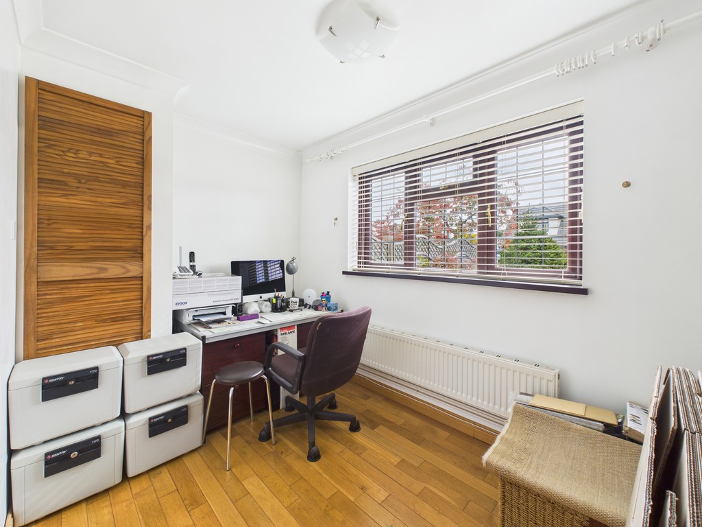 BEDROOM 3 10' 11" x 7' 8" (3.33m x 2.34m) Overlooks the front aspect of the property. Laminate flooring, built in cupboard which houses the Worcester boiler (Fitted in 2020) and water softening system, Loft access (33'2" x 12'4") which is fully boarded, with loft ladder and safety rails.