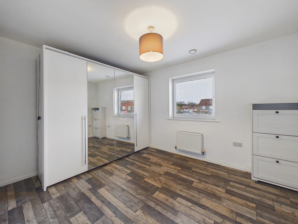 BEDROOM 12' 0" x 9' 11" (3.66m x 3.02m) Good size and shape bedroom with a double glazed window to front aspect, free standing new triple wardrobes, radiator, laminate wood effect flooring and smooth ceiling.