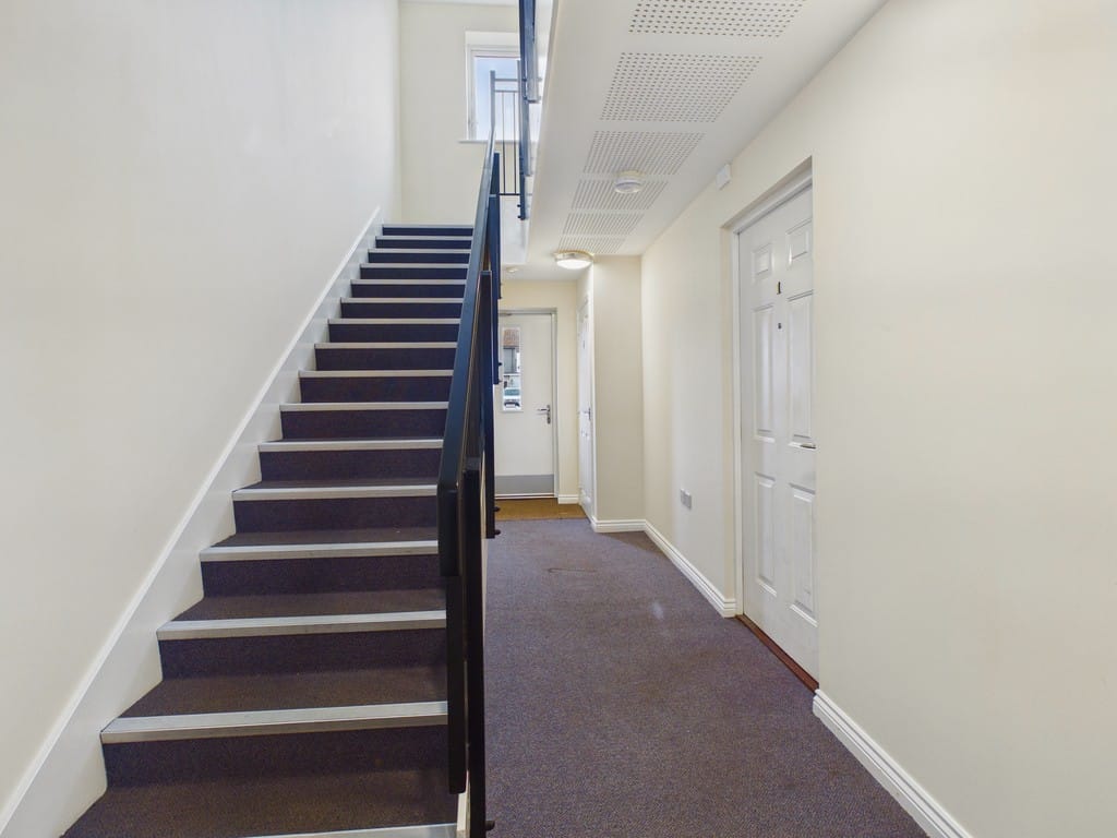 COMMUNAL ENTRANCE Intercom system, stairs rising to the first floor.