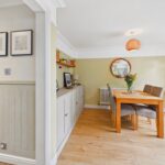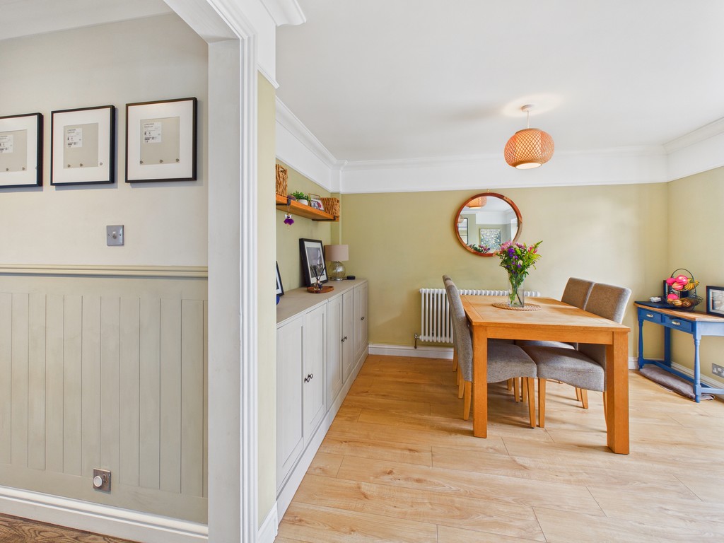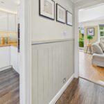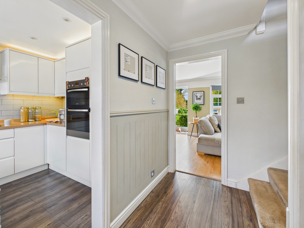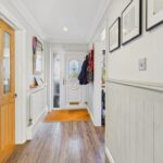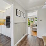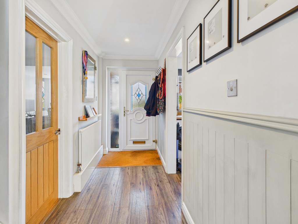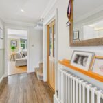 ENTRANCE HALL 11' 4" x 4' 6" (3.45m x 1.37m) A stunning entrance hall featuring elegant feature panelling, a sleek modern radiator, and warm laminate flooring. Stylish oak doors lead seamlessly into:
