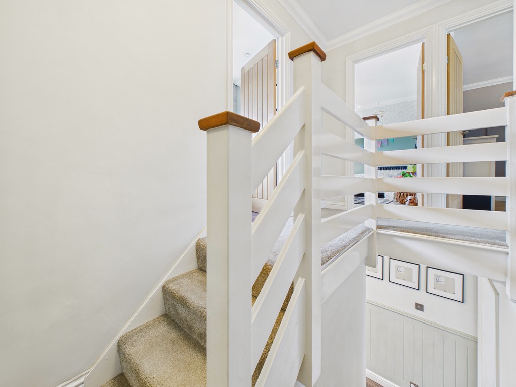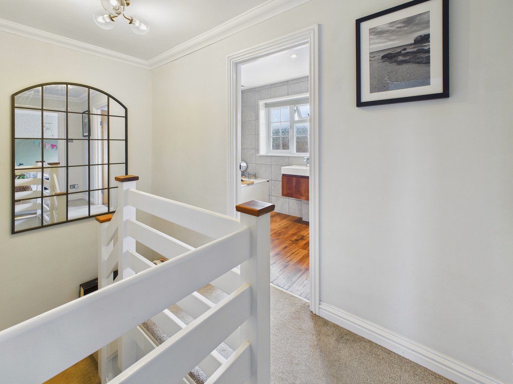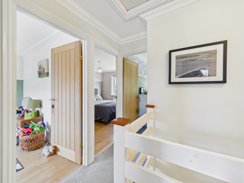 LANDING 11' 0" x 6' 9" (3.35m x 2.06m) A light and open galleried landing, carpeted for comfort, provides access to the partially boarded loft and flows seamlessly to the principal bedroom, two further well-proportioned bedrooms, and a family bathroom fitted with a contemporary suite. Oak doors lead to each room, adding a touch of elegance, while the spacious landing, with its balustrade overlooking the staircase, creates an airy and welcoming first-floor space.