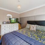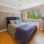 BEDROOM ONE 11' 7" x 9' 9" (3.53m x 2.97m) A relaxing room featuring soft, soothing tones on the walls, complemented by warm laminate flooring. A sleek radiator adds practicality, while a feature panel wall creates a subtle focal point, enhancing the room's calm and inviting atmosphere