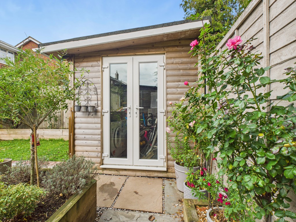 GARDEN STORE 9' 5" x 7' 4" (2.87m x 2.24m) Built just two years ago, with double-glazed doors and windows and power supply, this space could easily be transformed into a home office or a garden bar.
